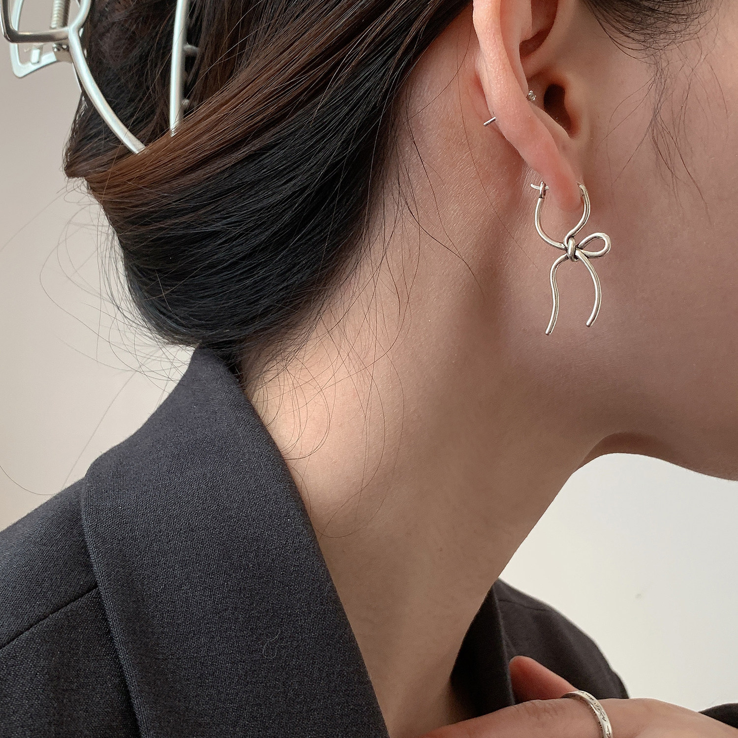Small treasure s925 pure silver unique design butterfly knot ear button female earrings small crowdsourced senior sense temperamental lukewarm