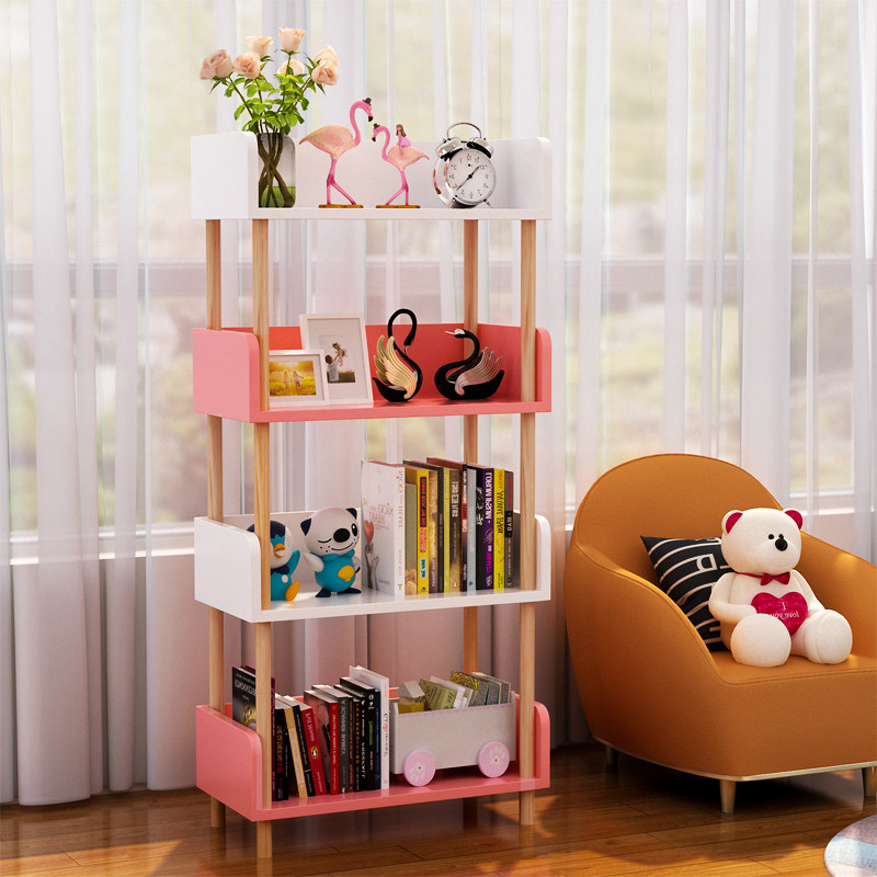 Simple Bookshelf Floor Home Living Room Leaning Against Wall Shelving Children Multilayer Storage Small Bookcase Solid Wood Containing Layer Shelf