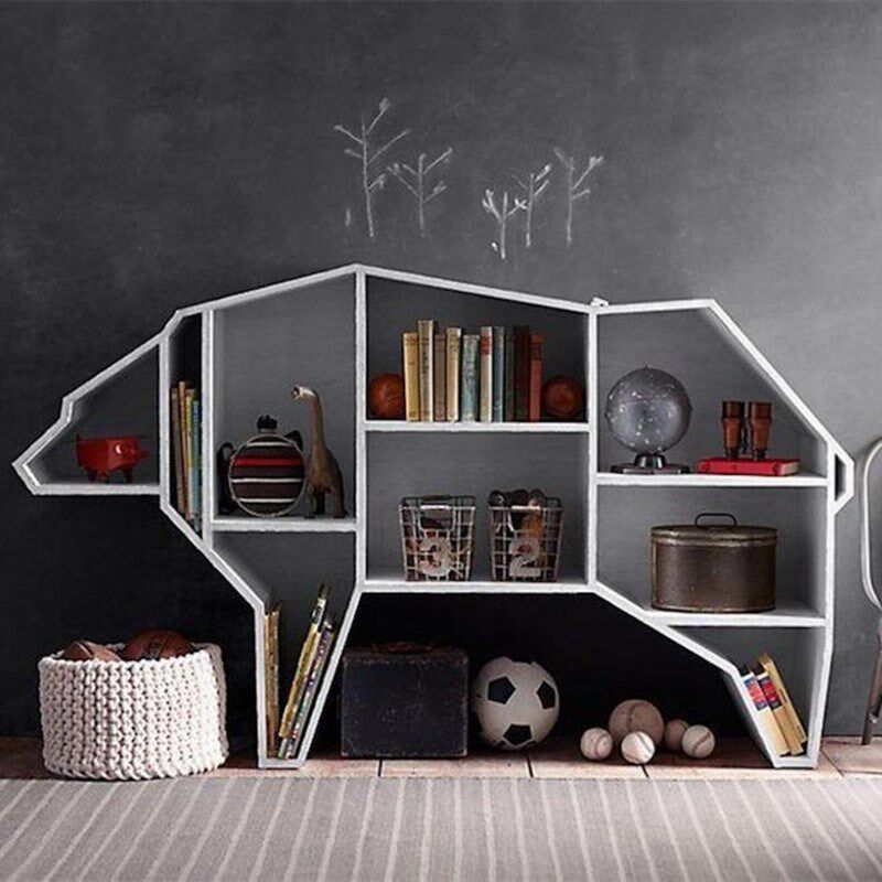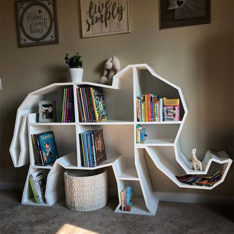 Custom creative wall-mounted bookshelf wall shelf children's study bookshelf wrought iron animal shape bookcase living room exhibition