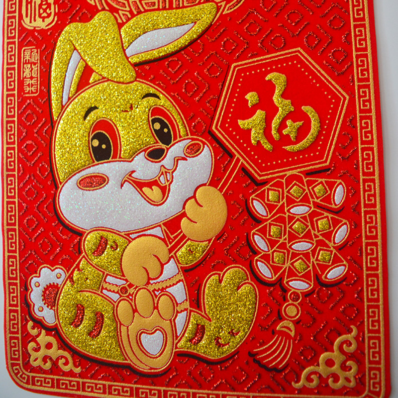 Rabbit year - wool cloth on the Xiaoxian Xiao Chunfederation 2023 high - grade stereo stamping stamping noodle self - adhesive stick stick