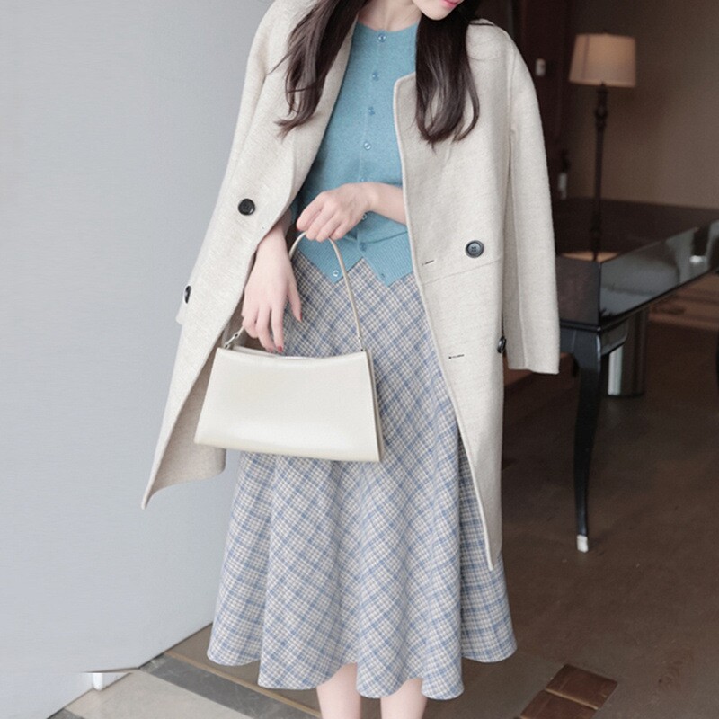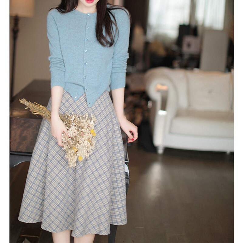 Gross half body dress lady autumn winter temperament high waist plaid fit sweaters a long version of the umbrella skirt dating skirt asd