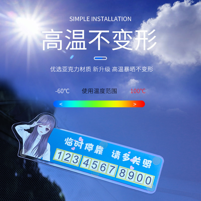 Car Temporary Parking Card Luminous Number Plate Cartoon Anime Car Moving Car Phone Plate Personality Moving Car Ornament Woman