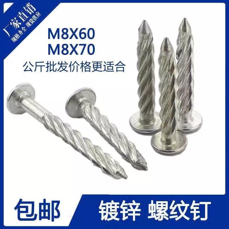 Twist nails, round head twist nails, threaded nails, screw nails, pressure explosion nails, suspended ceiling ceiling nails, puffy nails M8