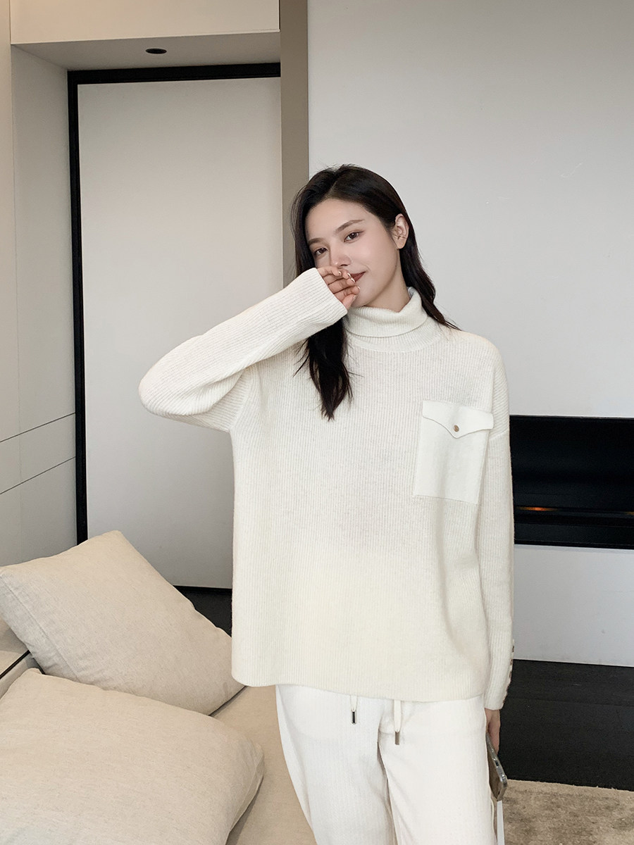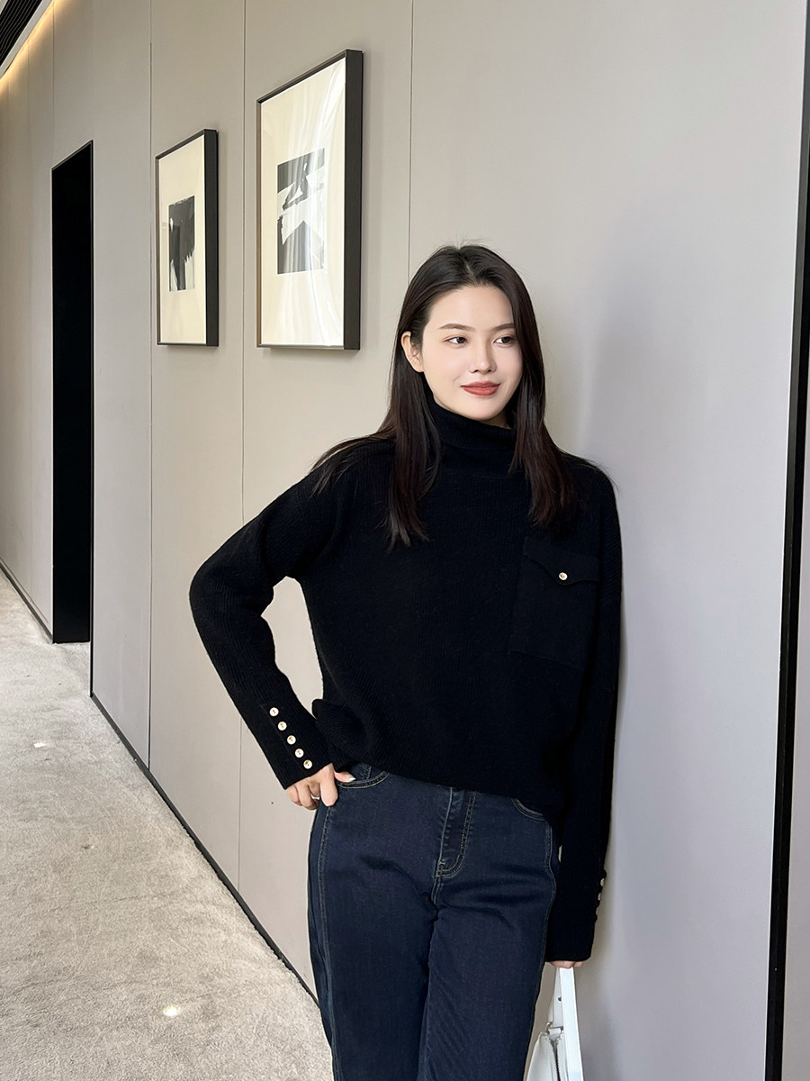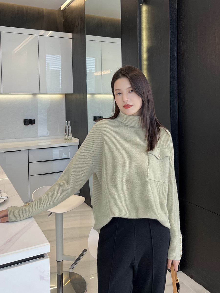 Brother-in-law (pocket full wool) 26 full wool colours selected high collar knit cardiovert sweater