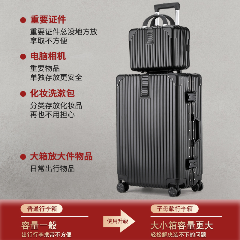 Luggage female aluminum frame 20 inch travel trolley case male universal wheel strong and durable password leather case 24 large capacity
