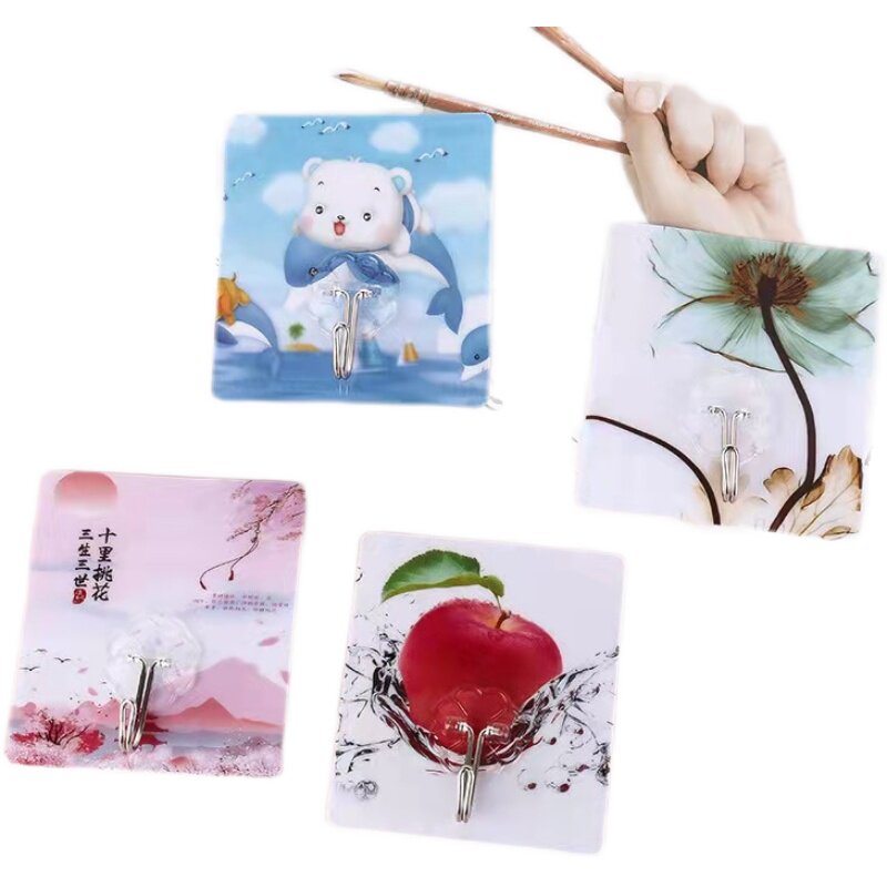 Pattern sticky strong viscose wall hanging wall creative kitchen hook weight-bearing free punching no trace self-adhesive