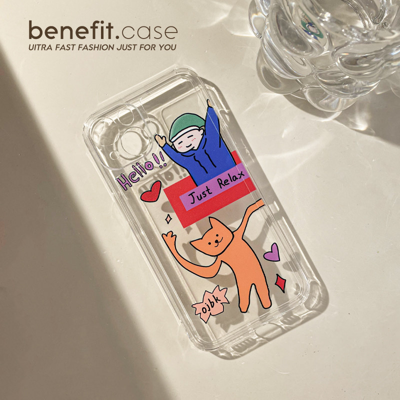 Benefit cartoon fun kitty applies Apple 13promax anti-fall mobile phone protection shell iphone12 protective sleeve xs full package xr transparent 8plus advanced 7p