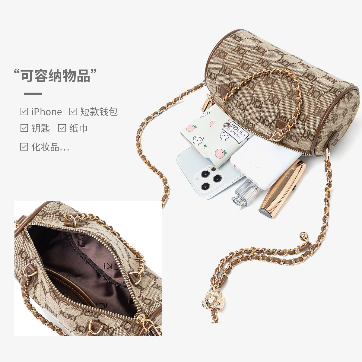 CleverKetch women's bag 2022 new wave fashion 100 lap chain single shoulder inclined satined cylinder bag small round bag