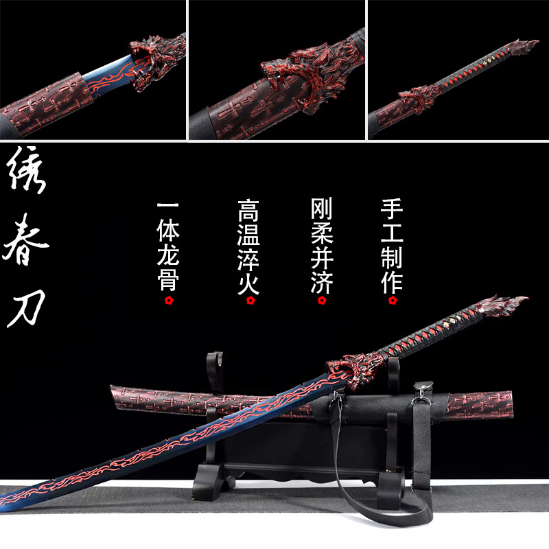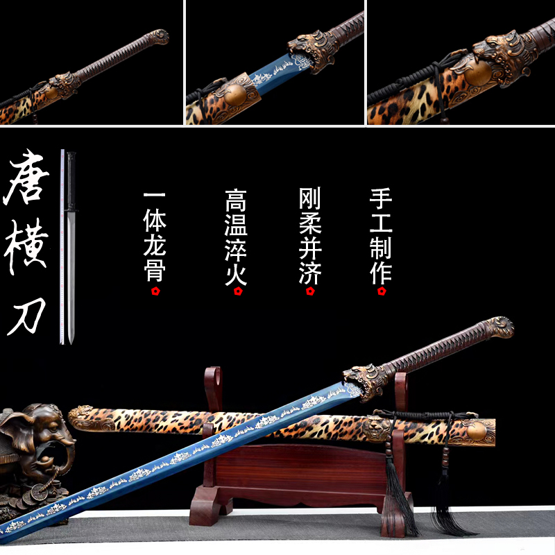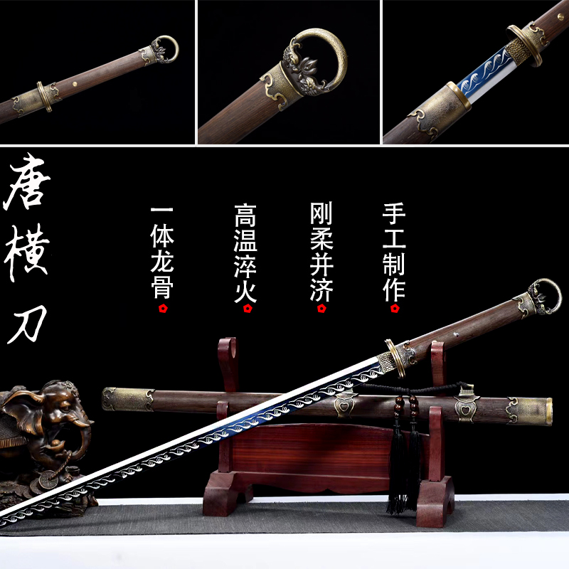 Treasure Knife Sword Tang Cross Knife Embroidered Spring Knife Black Gold Ancient Knife Ring First Integrated Manganese Steel Long Knife anti-body cold weapon unopened blade