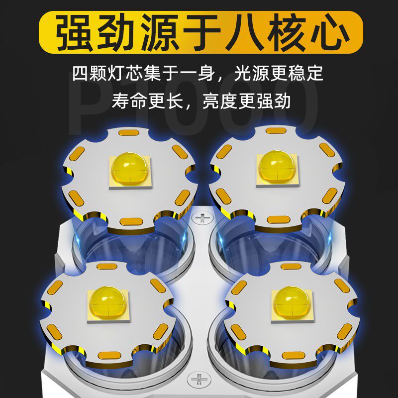 Quad-core flashlight strong light rechargeable ultra-bright small xenon special forces outdoor multi-functional led long-range light