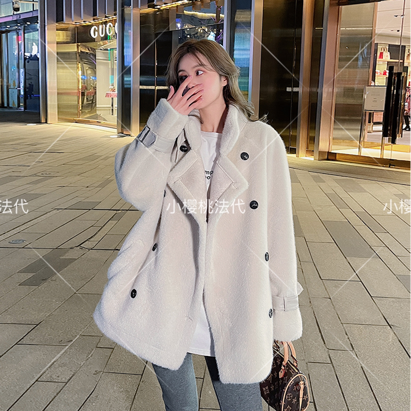 French maje21 winter fur one-piece lamb plush great coat Korean version loose with long version minced jacket