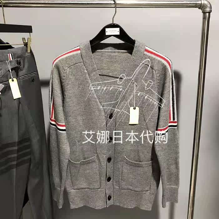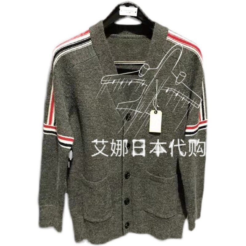 Aina Thom Browne21 autumn winter style knitted cardiovert V collar red white blue jacket male and female