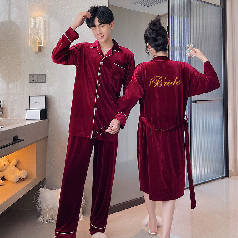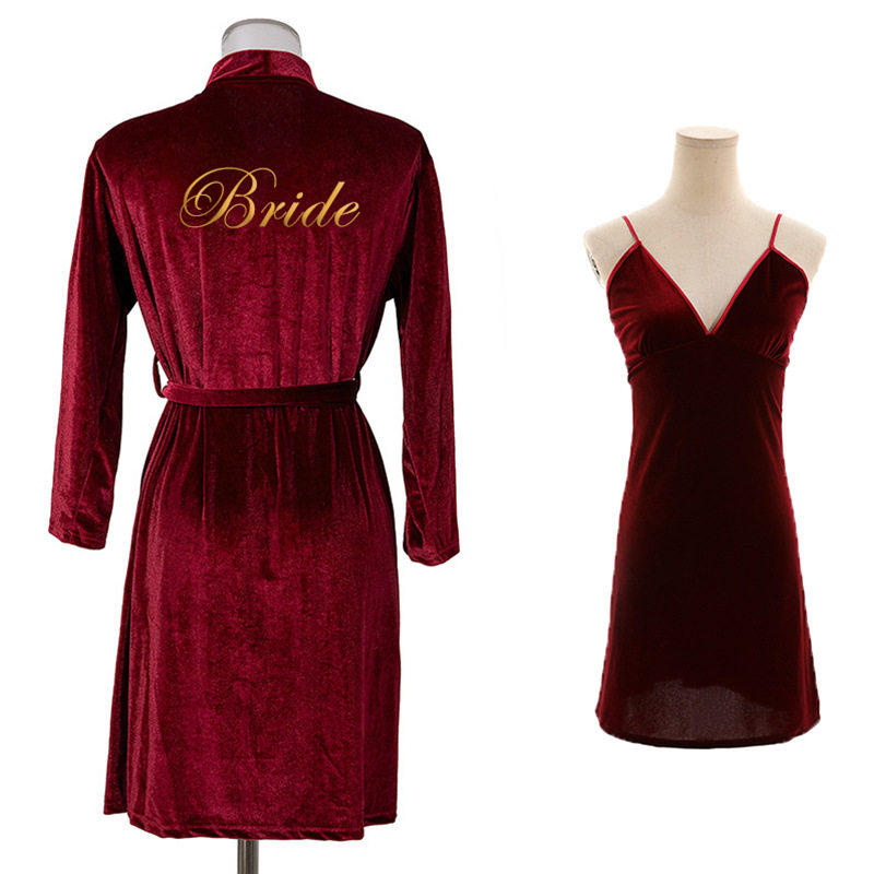 Morning gown female bride wedding wedding pajamas red long section autumn and winter bridesmaid nightgown slippers sexy simple thickened
