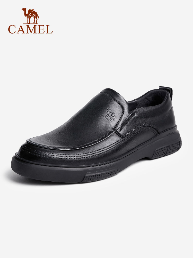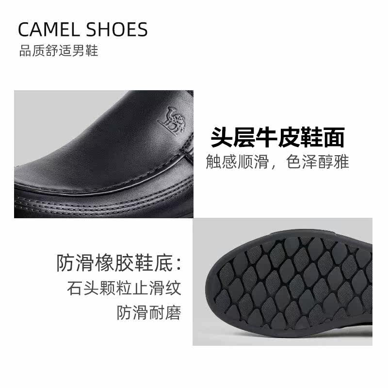 Camel leather shoes men's genuine leather brand winter soft-soled soft-faced leather breathable slip-on middle-aged men's shoes dad