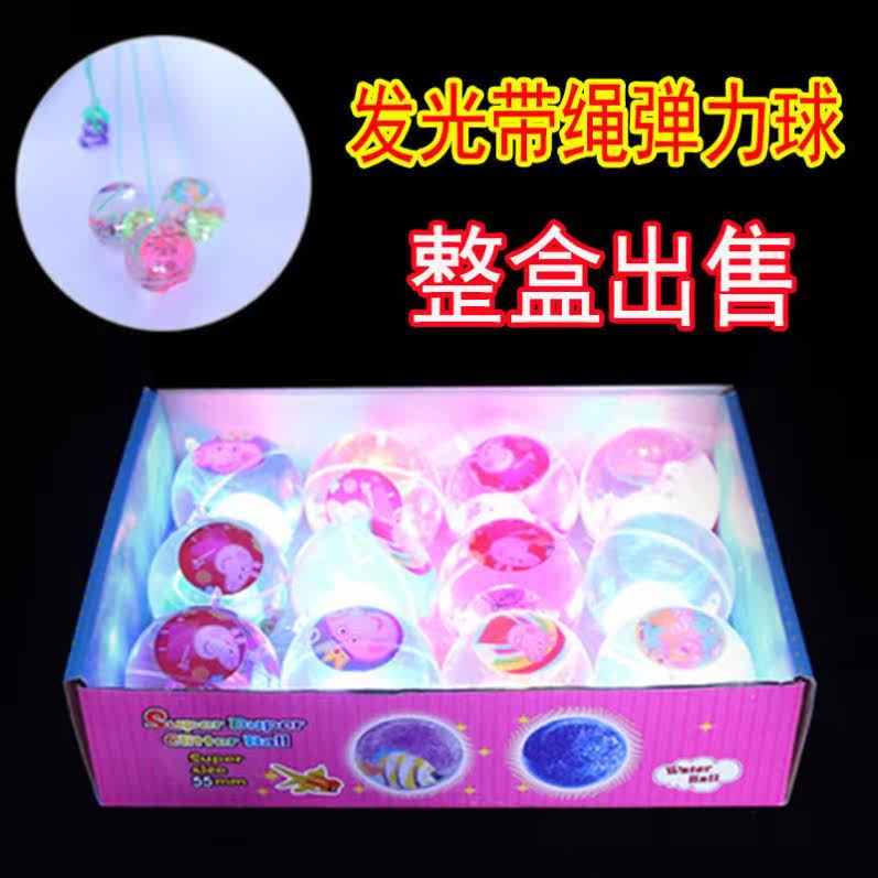 Flashing crystal ball, luminous elastic ball, colorful jumping ball, flashing elastic ball with rope, children's toy ball
