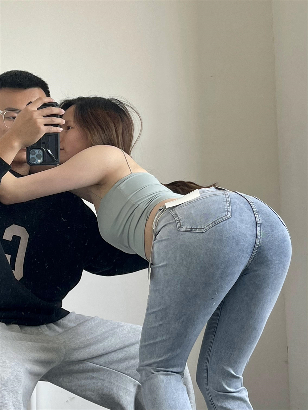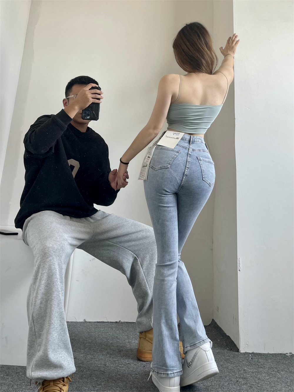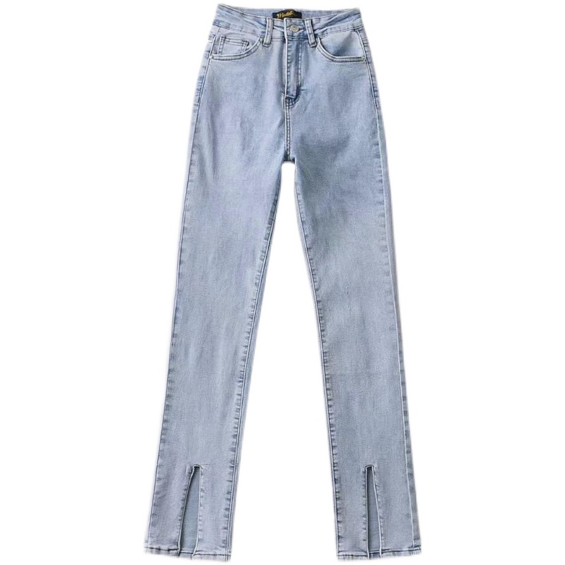 2022 early spring slim fit hip slit denim trousers women's light blue European and American style and ankle cigarette pants trend