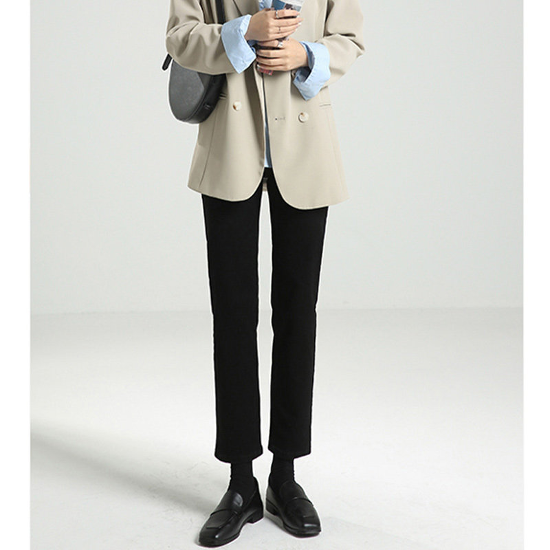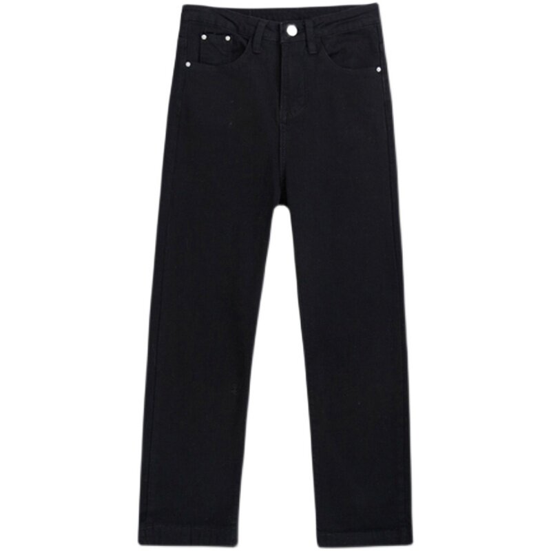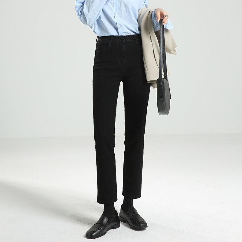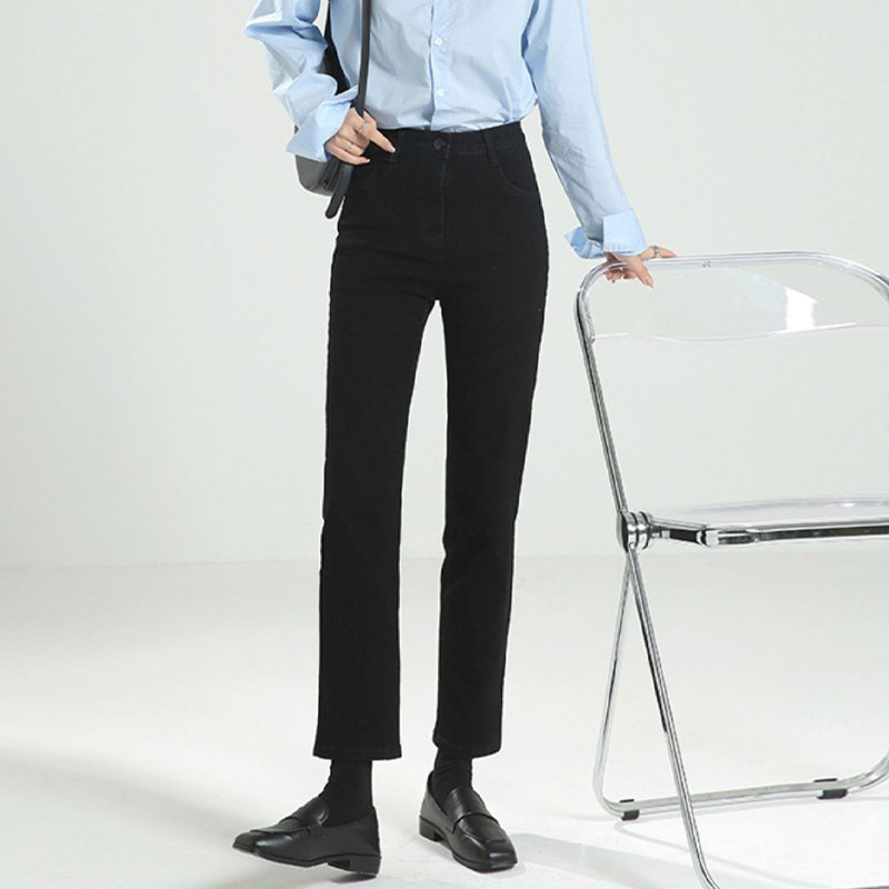 Thin pants pear-shaped body straight jeans women's summer fat sister mm large size high waist black nine-point cigarette pants
