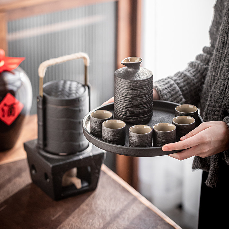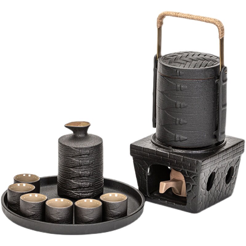 Black Tao Tiliang steaming Day Upper winemaker Black Tao Tiliang Steaming Day winemaker Wine Pot Black Pottery Tiliang Steamed wineware hearth black Tao Tiliang Steaming Day winemaker with 6 cups of black Tao Tiliang steam-to-steam
