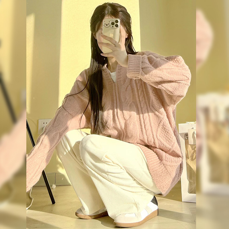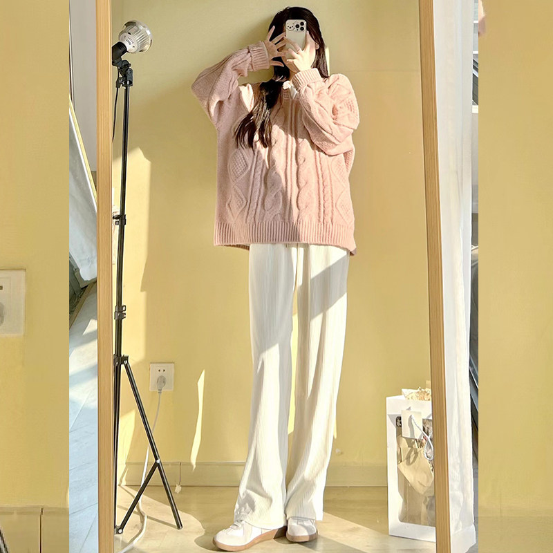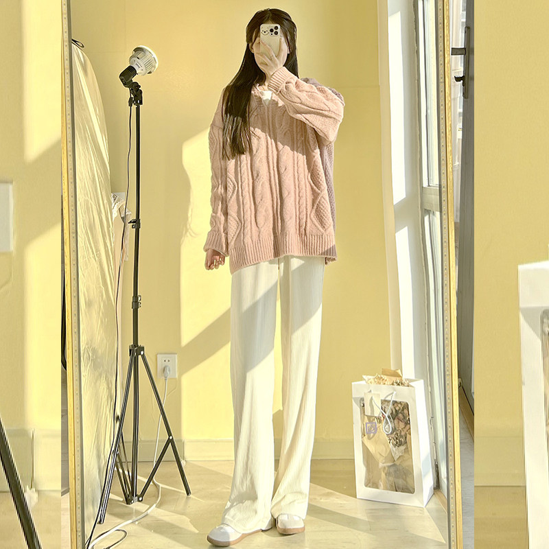 White corduroy wide-leg pants women's autumn and winter high waist hanging feeling loose straight leg mop casual plus plush velvet pants