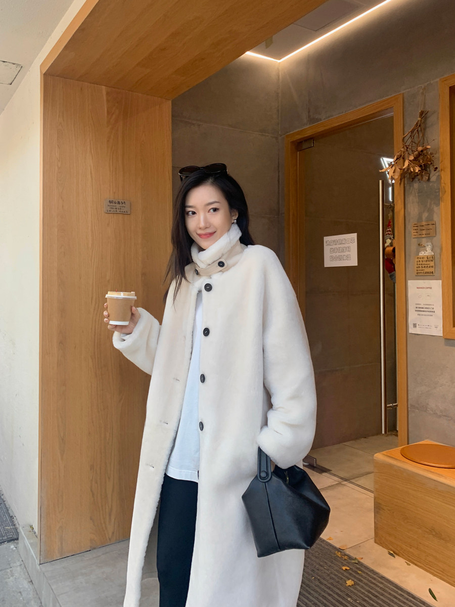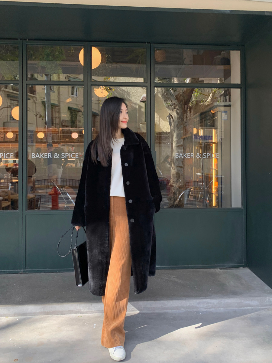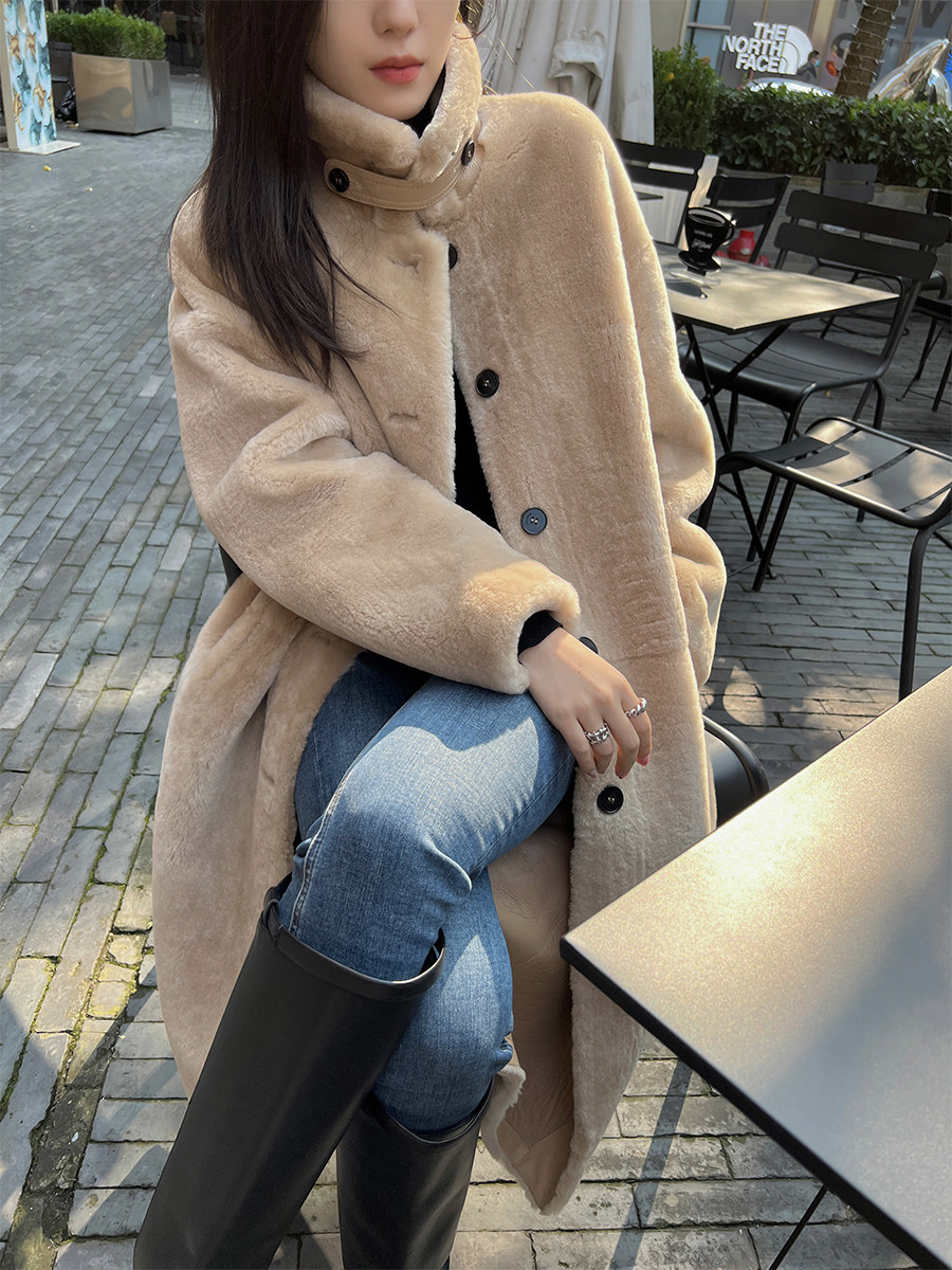 MSBEAST imported merino fur coat women's lamb fur coat silhouette long lapel