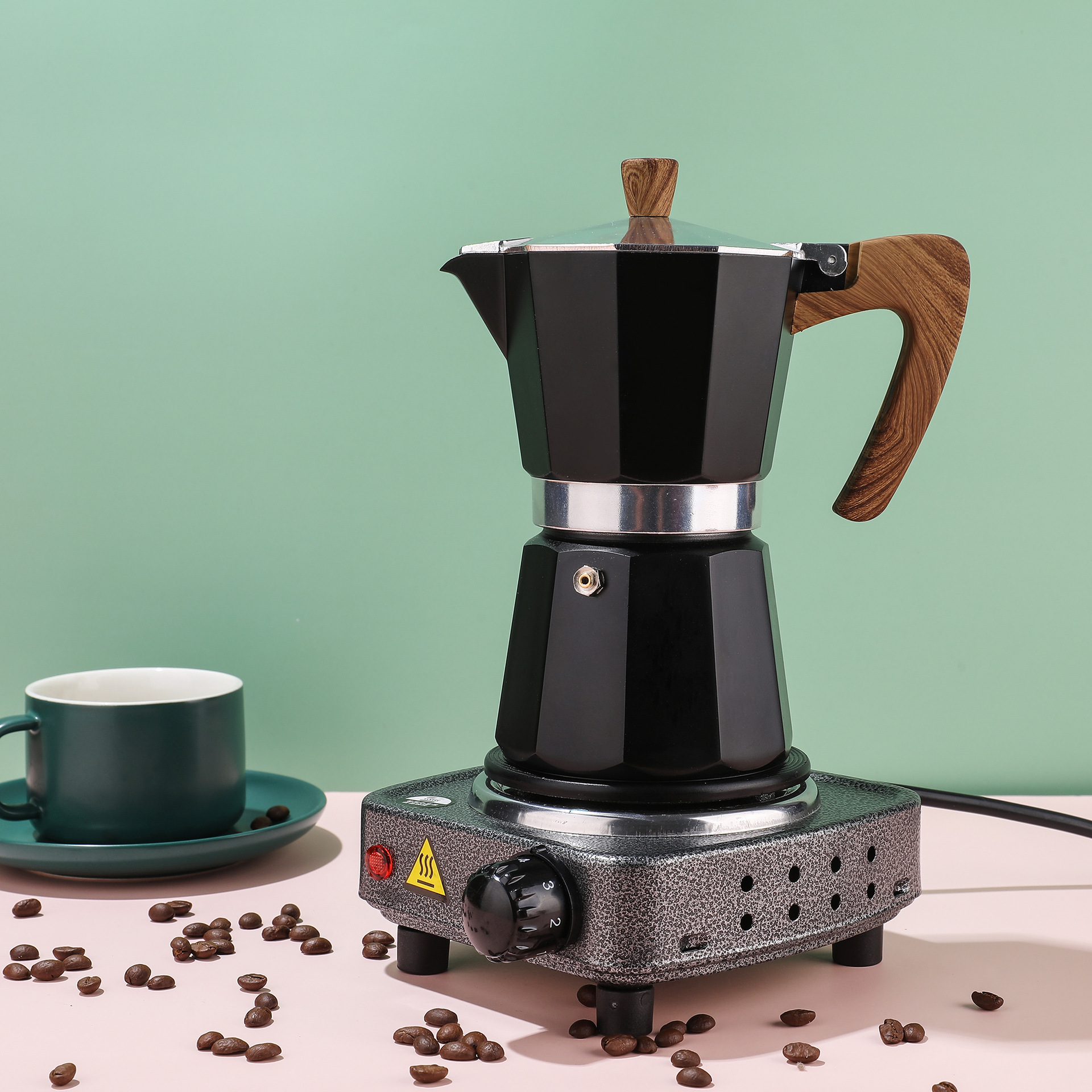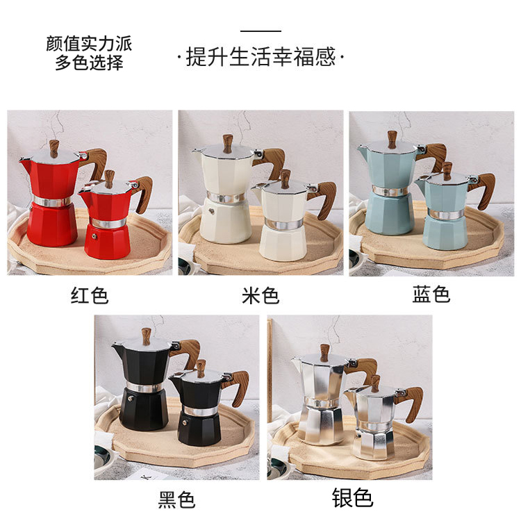 Fine work anise aluminium Mokka jug Classic Coloured Coffee Pot Espresso Coffee Bean Powder Hand Sprint Filter Cafe