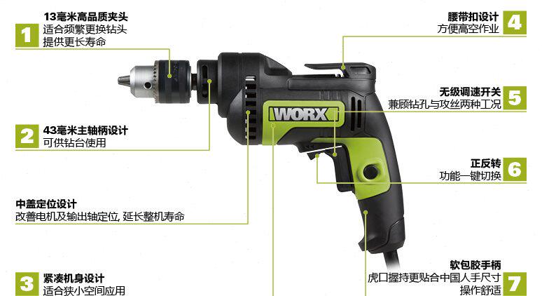 Wickerz WU107 electric drill is reversing 13mm high-power 650W multifunction electric drill electric drill WORX