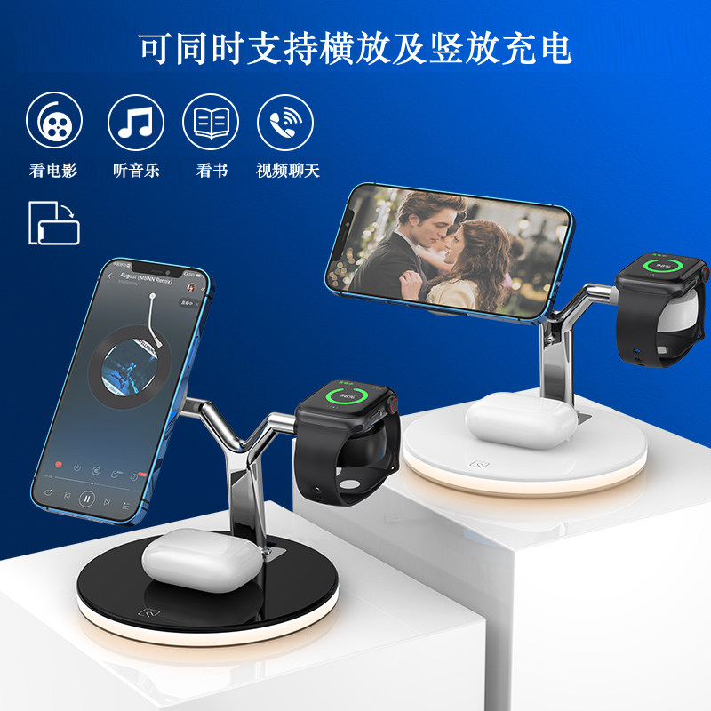 Magnetic suction wireless charger three-in-one suitable for iPhone12 Apple 13 watch headset mobile phone vertical fast charge