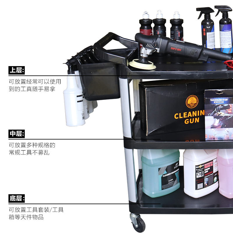 Automotive Fine Wash Equipment Multifunction Triple Layer Tool Car Beauty Shop Trolley Towel Tool Rack 2 Plastic Casks