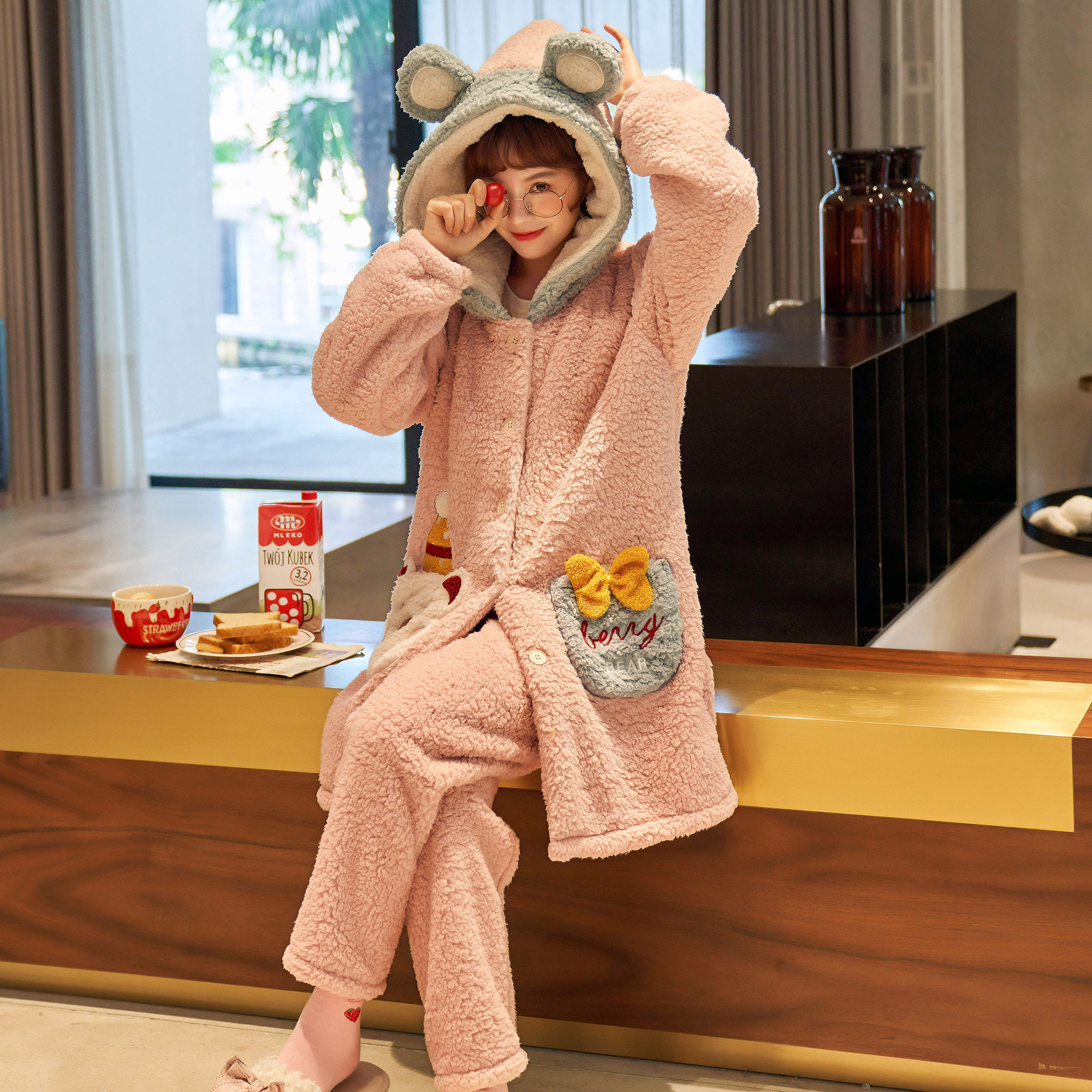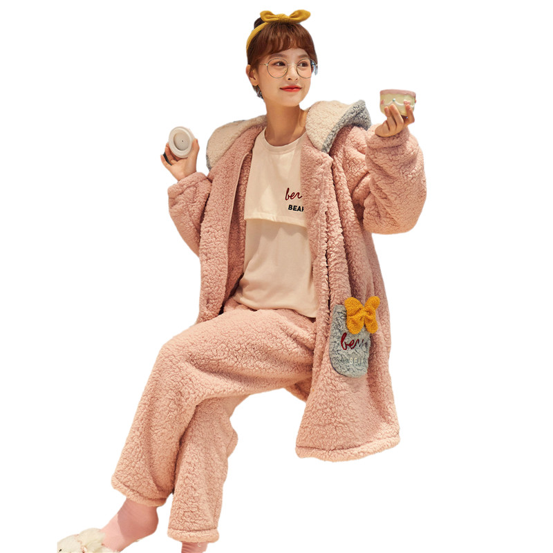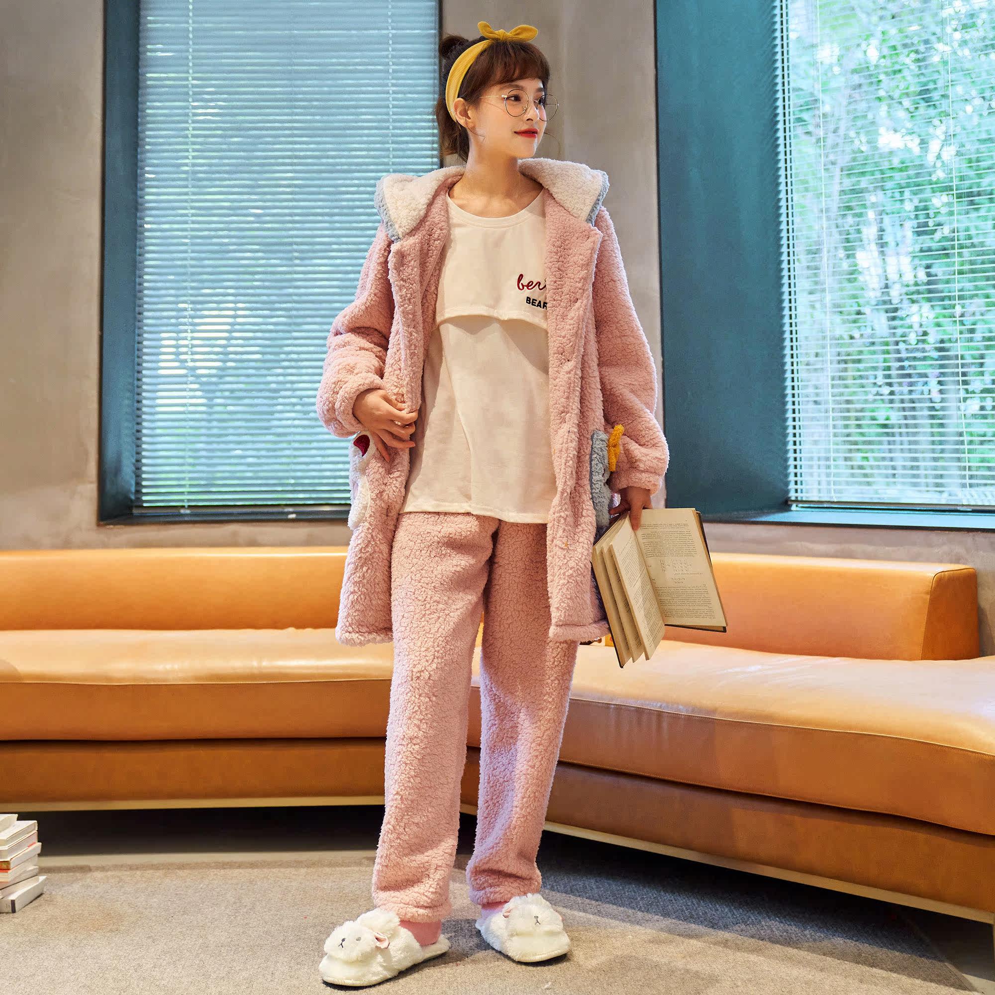 Confinement clothing winter postpartum pregnant women pajamas women breastfeeding autumn and winter models thickened plus velvet coral fleece three-piece home clothes
