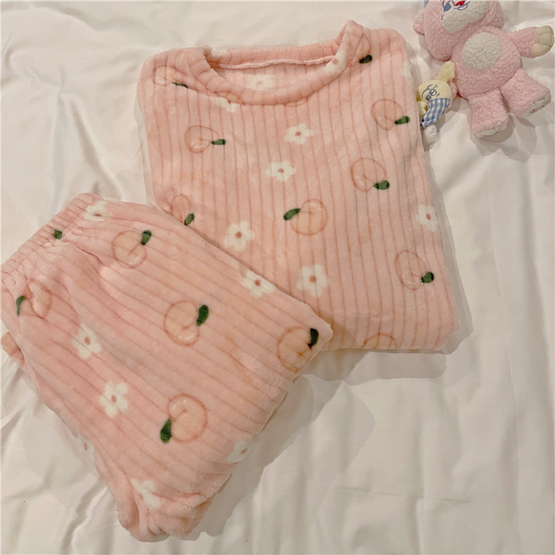 2021 new autumn and winter coral fleece warm and thick home clothes cute peach pajamas fashion large size two-piece suit - Taobao