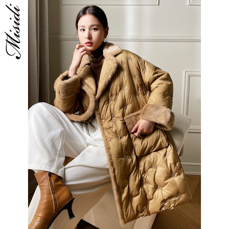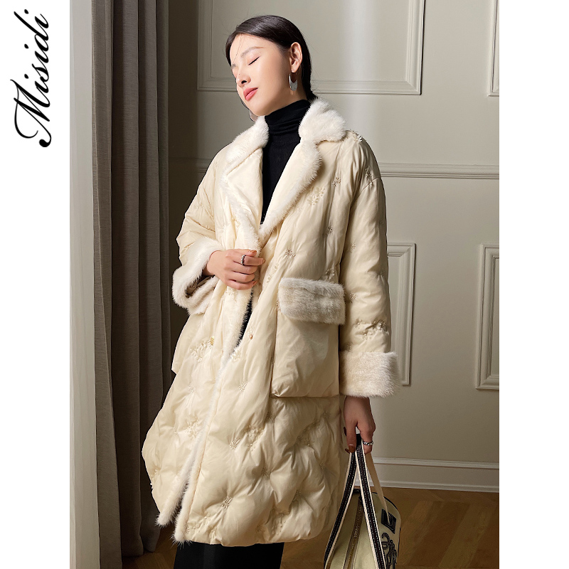 Henin Waters Mink Fur Fur Straw Woman Medium Long Version Large Coat Light Slim Down Clothing White Goose Down Coat Jacket 2021 Winter New