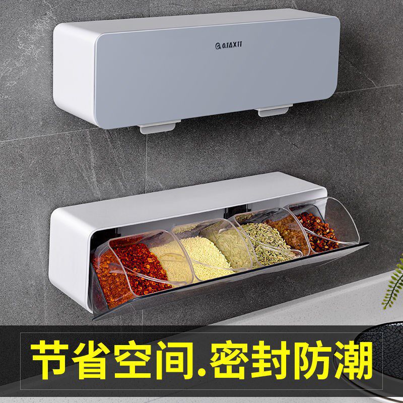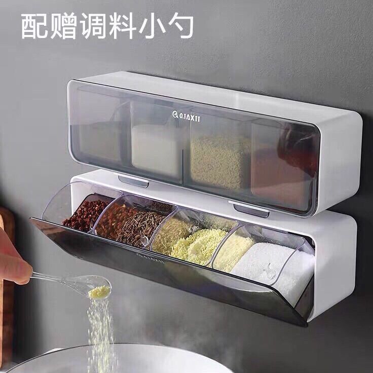 4-grid wall-mounted seasoning box (transparent color) to send spoons4-grid wall-mounted seasoning box (high-grade gray) to send spoons