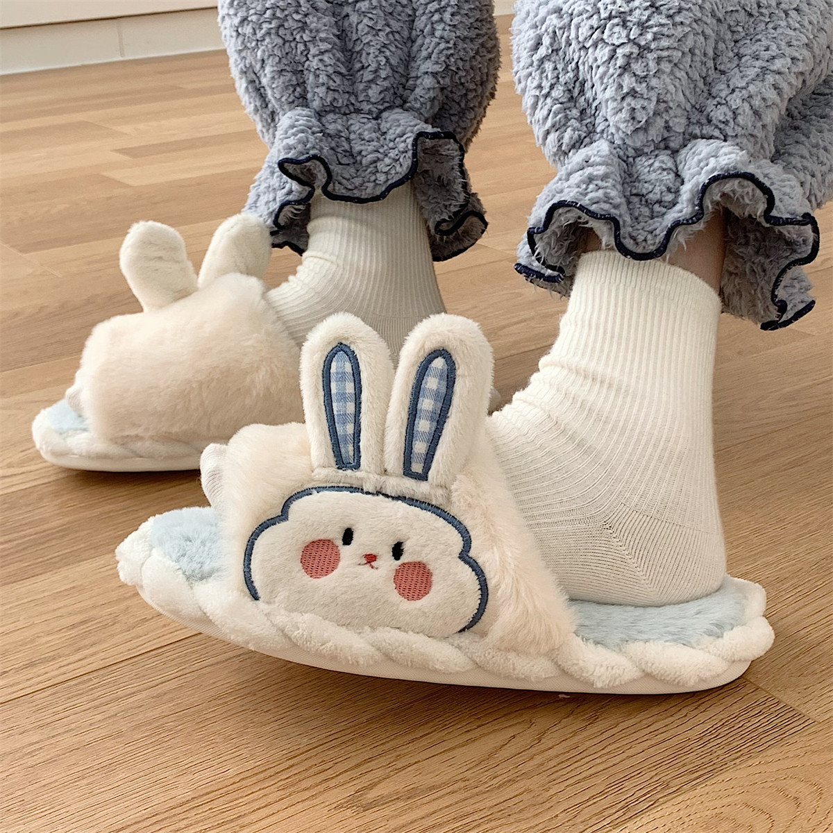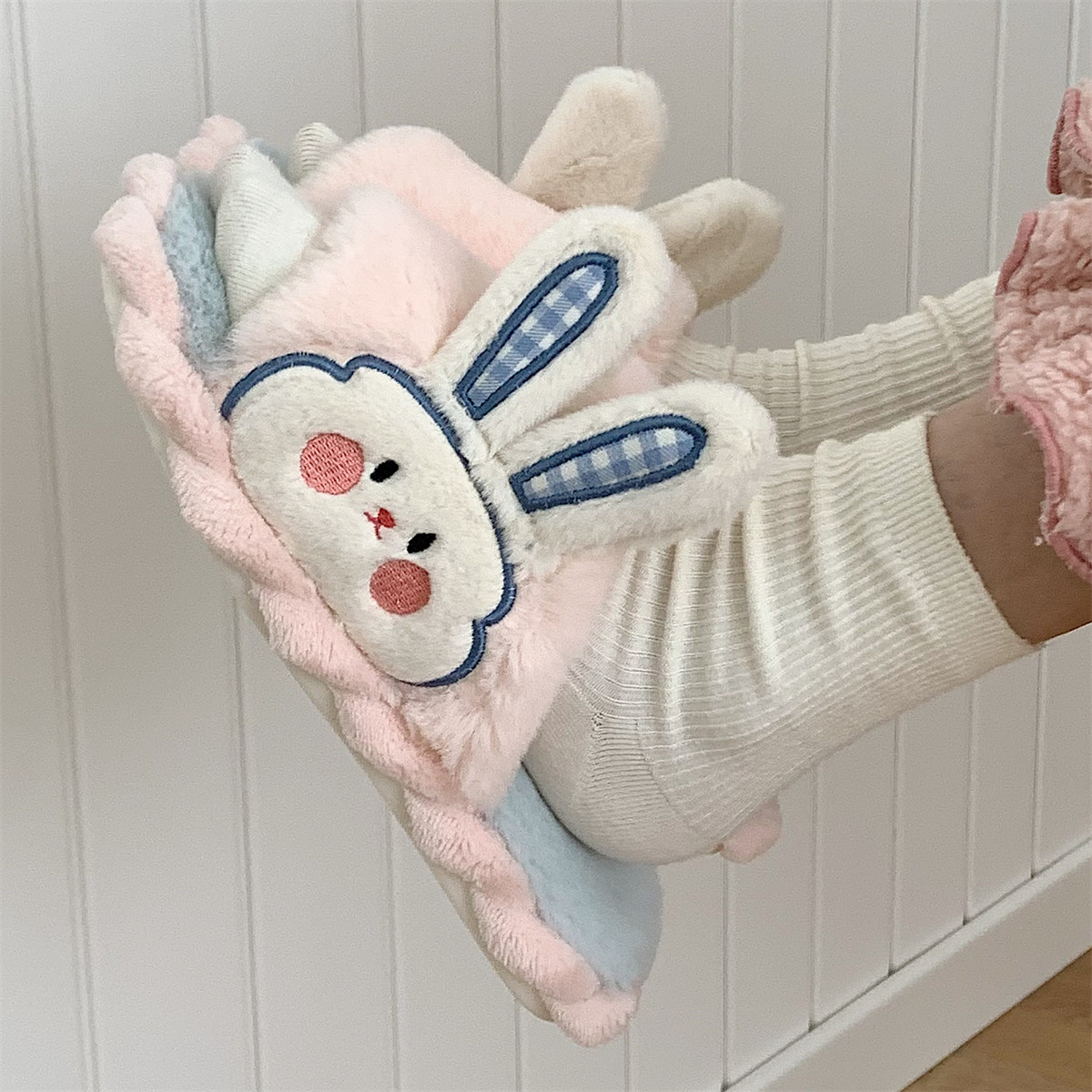Ins fashion new cute girl heart cotton slippers non-slip indoor home warm rabbit home shoes female