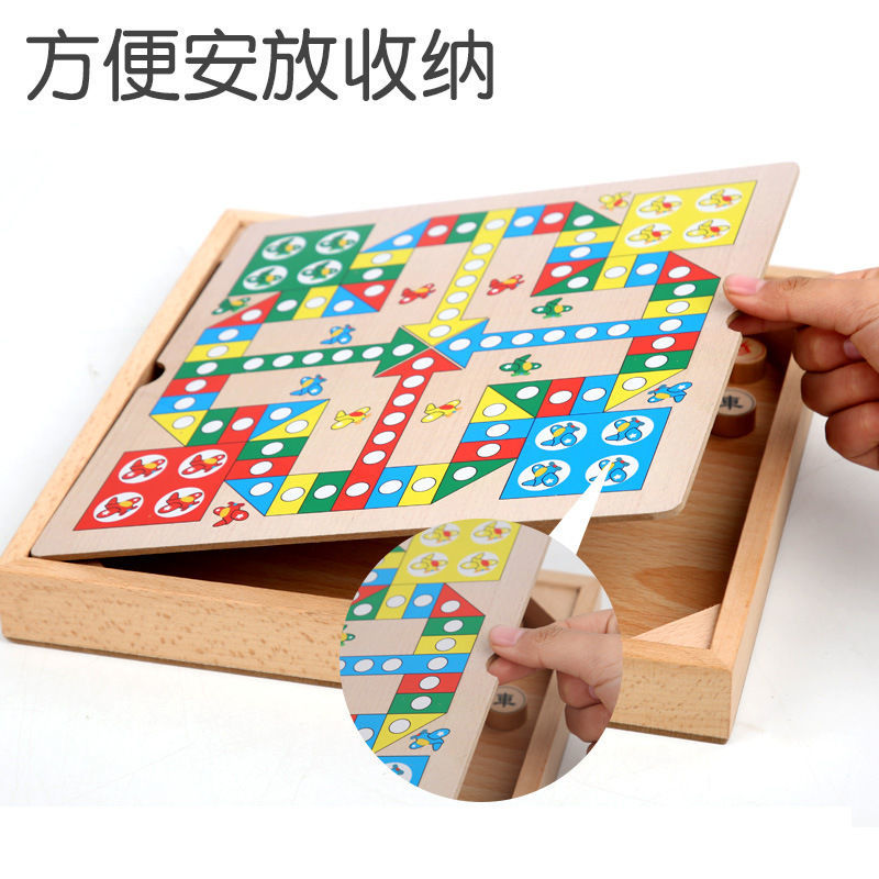 Student flying chess checkers backgammon military chess primary school students chess wooden chessboard chess piece puzzle two-in-one toy
