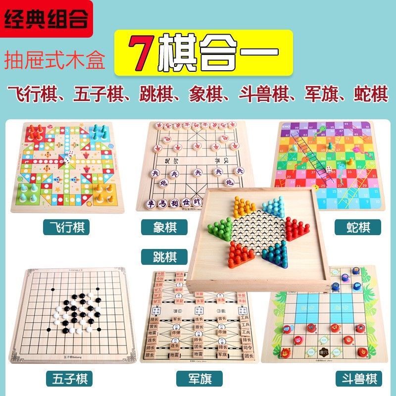 5-in-1 game chess 2-in-1 (flying chess, chess) 2-in-1 (checkers, chess) 2-in-1 (checkers, military chess) 2-in-1 (checkers gobang) 2-in-1 (checkers, snake chess)