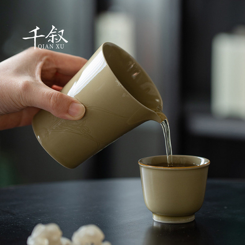 Plant ash justice cup large hidden carved orchid ceramic male cup even cup tea sea high-end tea divider kung fu tea set