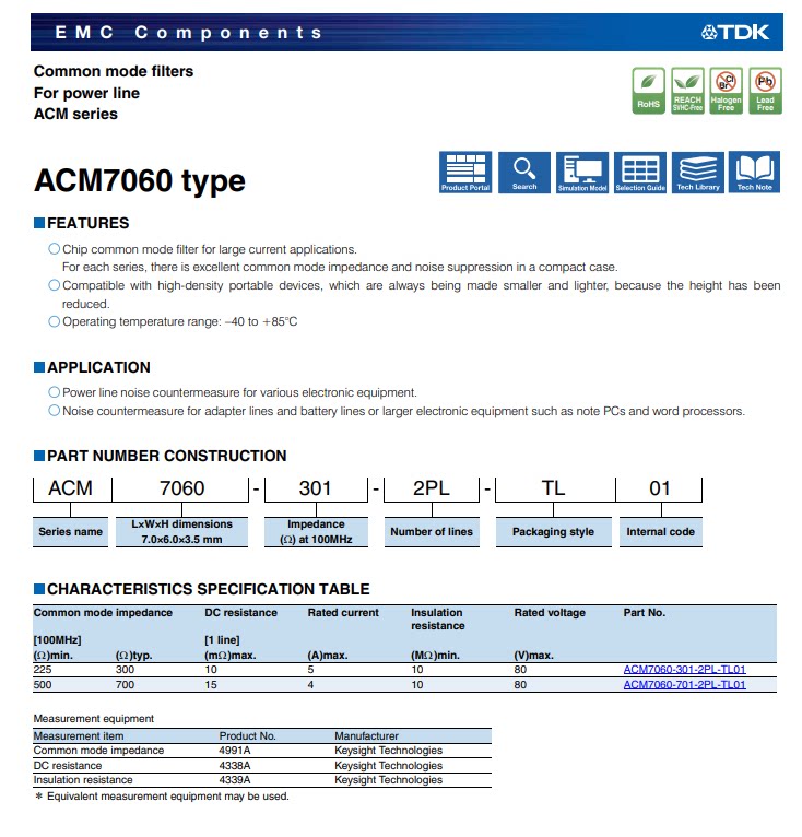 ACM7060 9070 1211-701 Total-mode chopper filter 700ohms 100MHz 50v