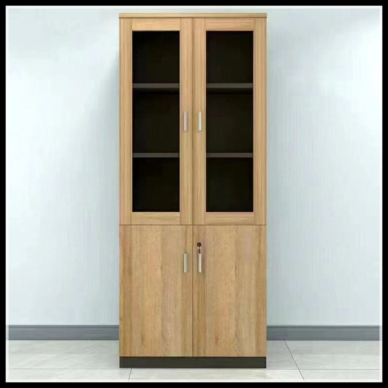 Office furniture double door landing office file cabinet employee wooden glass door bookcase for simple data collection cabinet