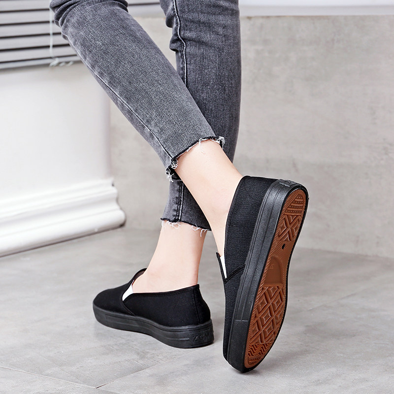 Old Beijing cloth shoes pure black canvas shoes women's shoes slip-on lazy non-slip lightweight flat casual shoes