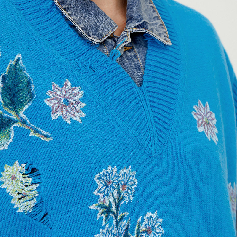 JNBY Jiangnan Burcoat spring sweatshirt wool V collar minimalist printed trendy medium long Machia 5LB851420