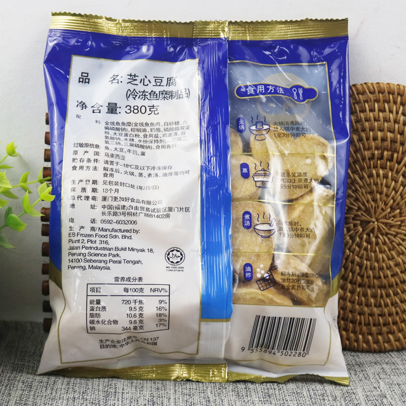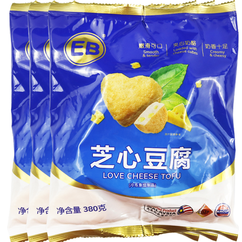 EB Cheese Heart Tofu 380g*3 Pack Cheese Seafood Fish Tofu Cheese Sandwich Love Fish Ball Hot Pot Meatball Ingredients