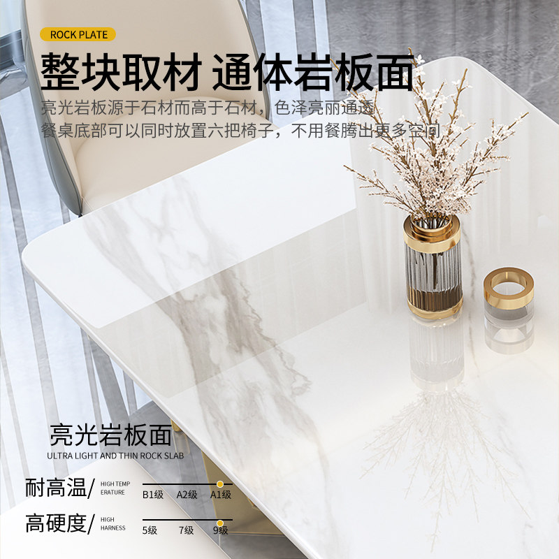 Rock slab dining table modern minimalist light luxury rectangular high-end new bright marble home small-sized dining table