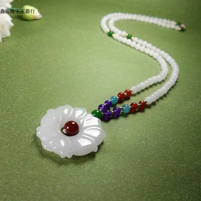 Xinjiang Hetian Golden Silk Jade Sweater Chain 2022 New Tide Long Version High-grade Lotus Pendant Autumn and Winter Necklace Female Jade