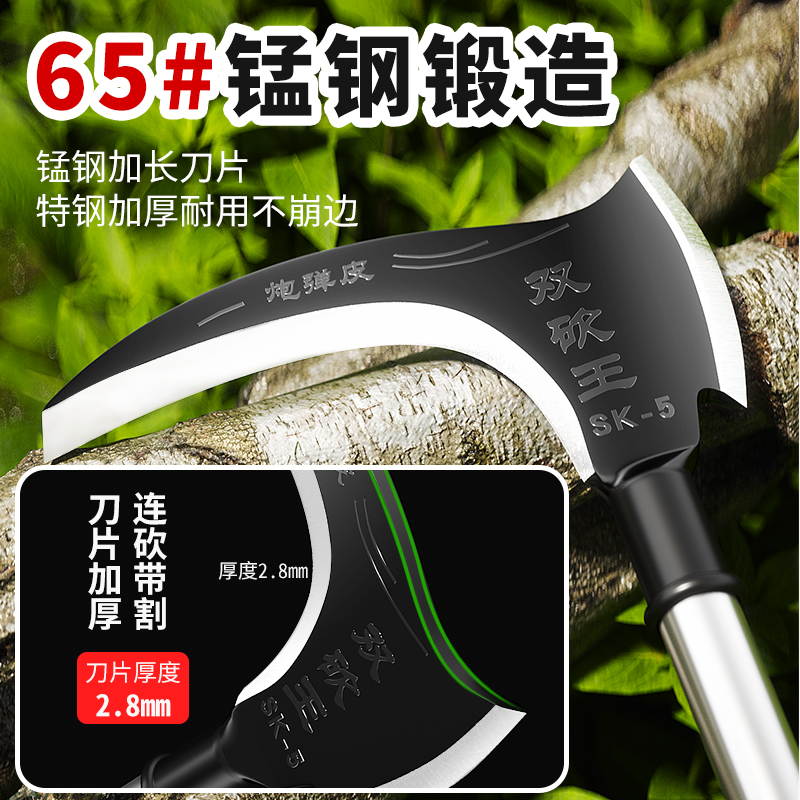 Meneng steel double machete head (single head) Mengsteel double chop Wang log handle section (total length 430MM long) Mengsteel double chop Wang plated zinc pipe handle (total length 400MM long) Mengsteel double chop