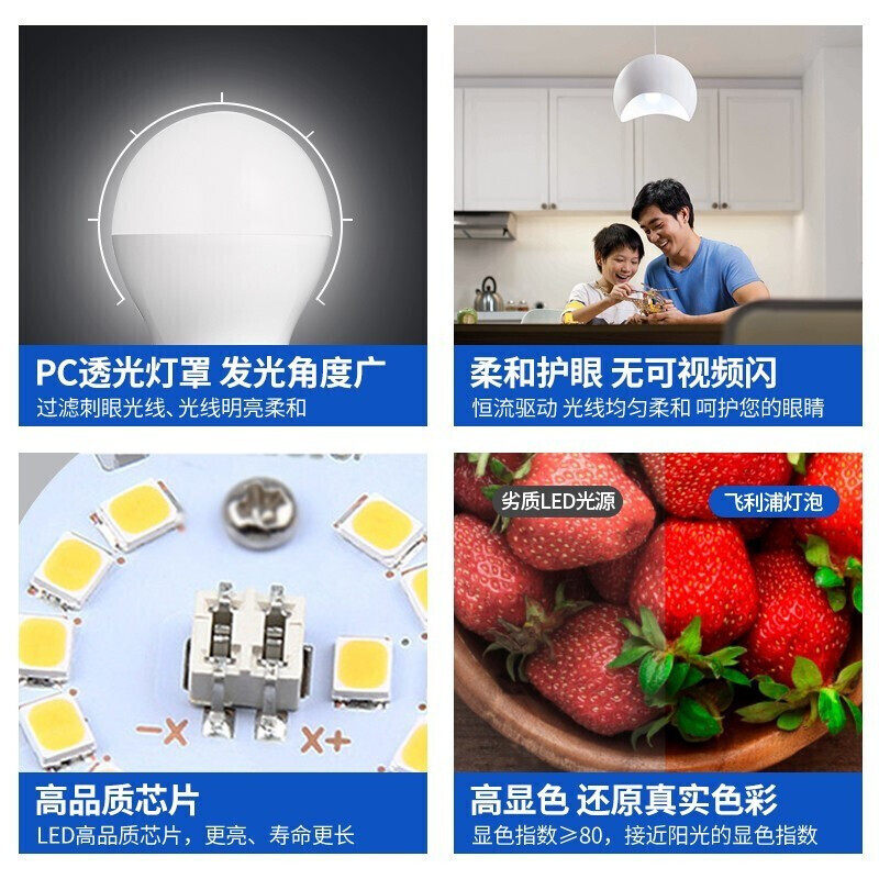 Philips LED bulb energy-saving lamp E27 ultra-bright high-power light source warm light screw spiral household light bulb