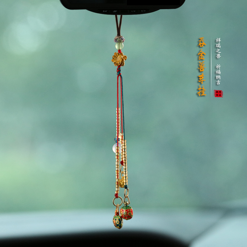 Creative copper swallowed beast car hanging in the red hand car hanging in the high-end rear-view mirror vehicle for men and women