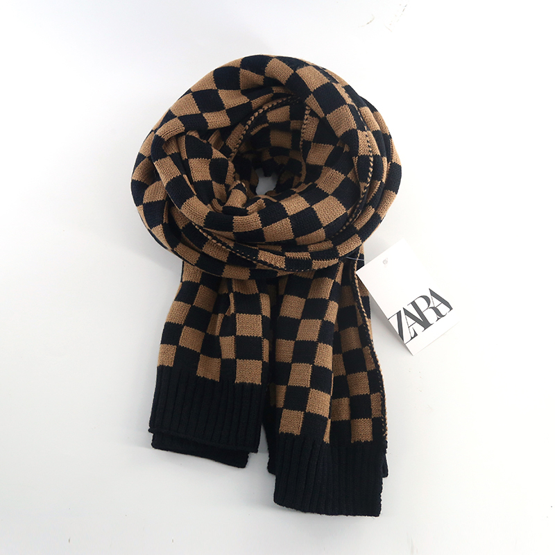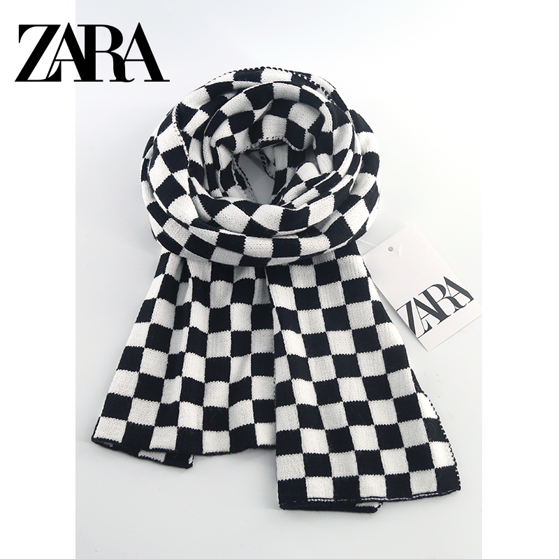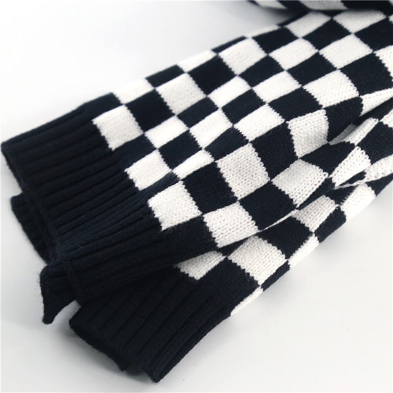 Pizza Home Black And White Chessboard Plaid Knit Wool Cord Scarves Day of Han edition 100 hitch female winter student checkered small scarf