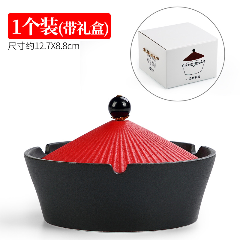 Good luck head) Chinese ashtray first-grade official hat black ceramic trend home living room with lid to prevent ash as a gift