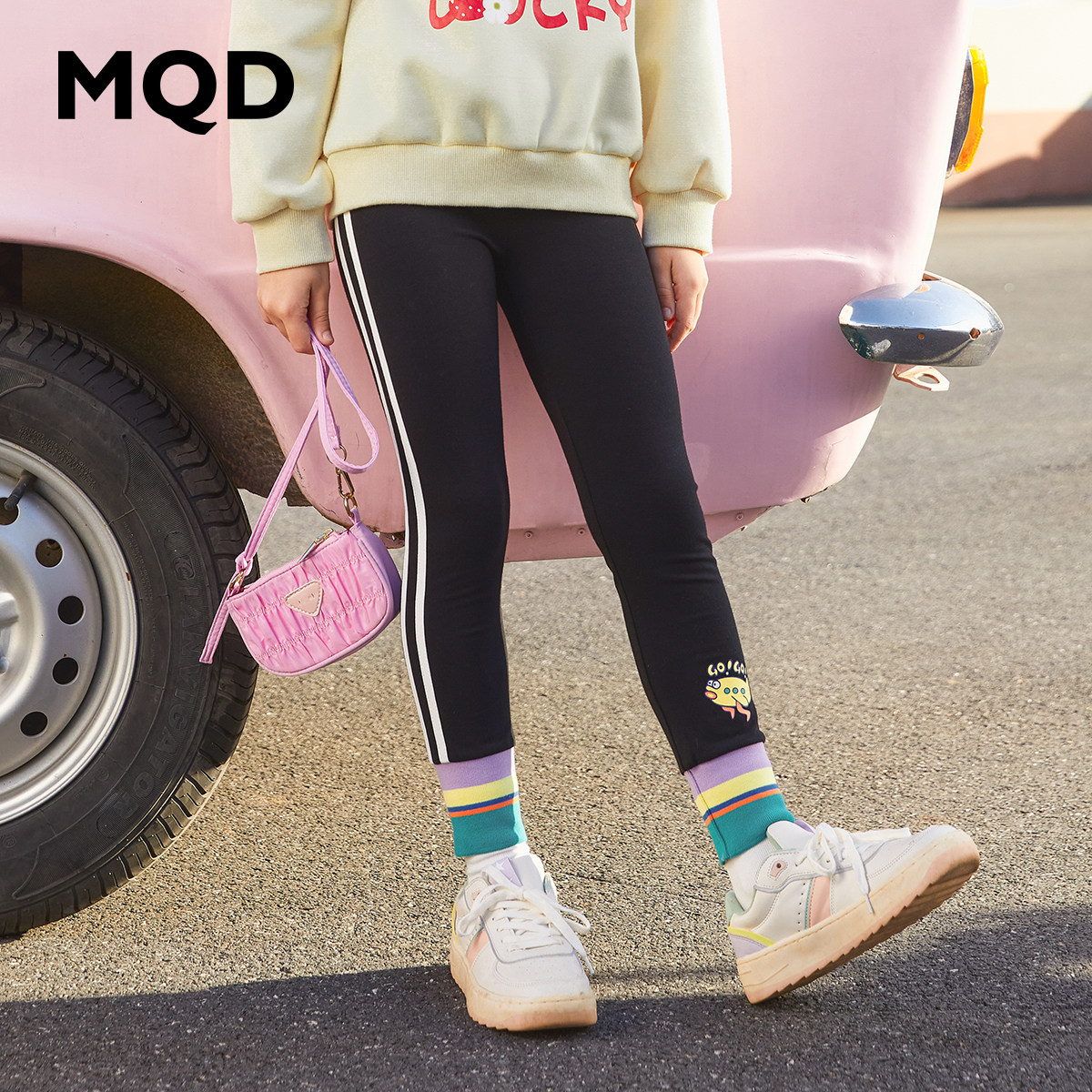 MQD child clothing girl 2022 spring new inner lap pants CUHK Girl girl fashion elastic sport long pants tide