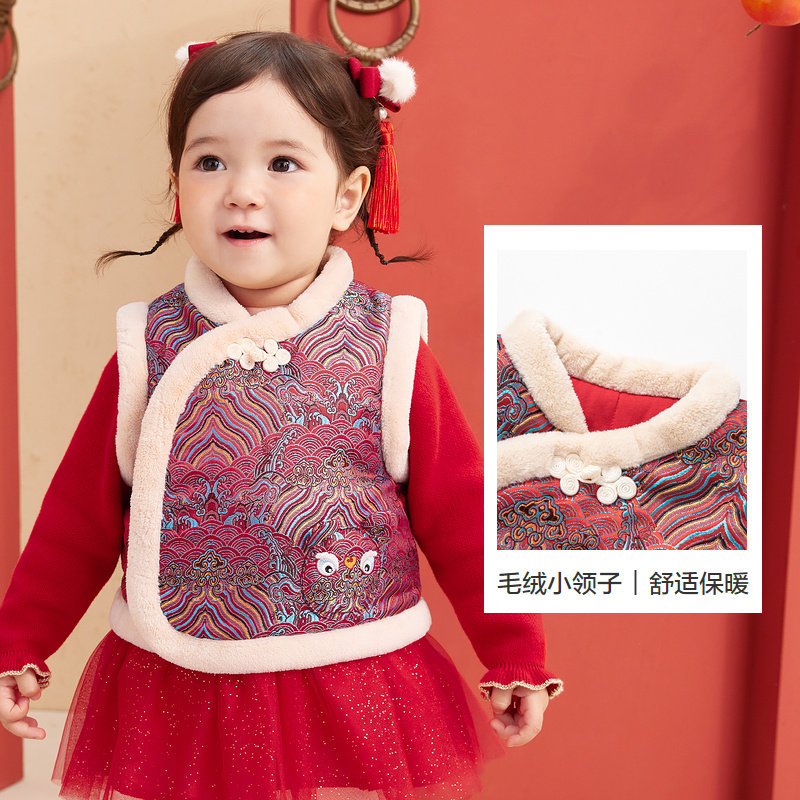 Ballabala children's waistcoat vest boy baby spring autumn vest girl warm kampa shoulder 2022 new year of worship